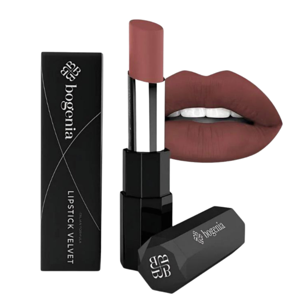 احمر شفاه فيلفيت كريمي مطفي من بوغينيا يدوم طويلا ولا يعمل على تجفيف الشفاه, يتميز بتركيبة غنية من الاصباغ للحصول على احمر شفاه دقيق بلون مطفي كثيف وخفيف على الشفاه.