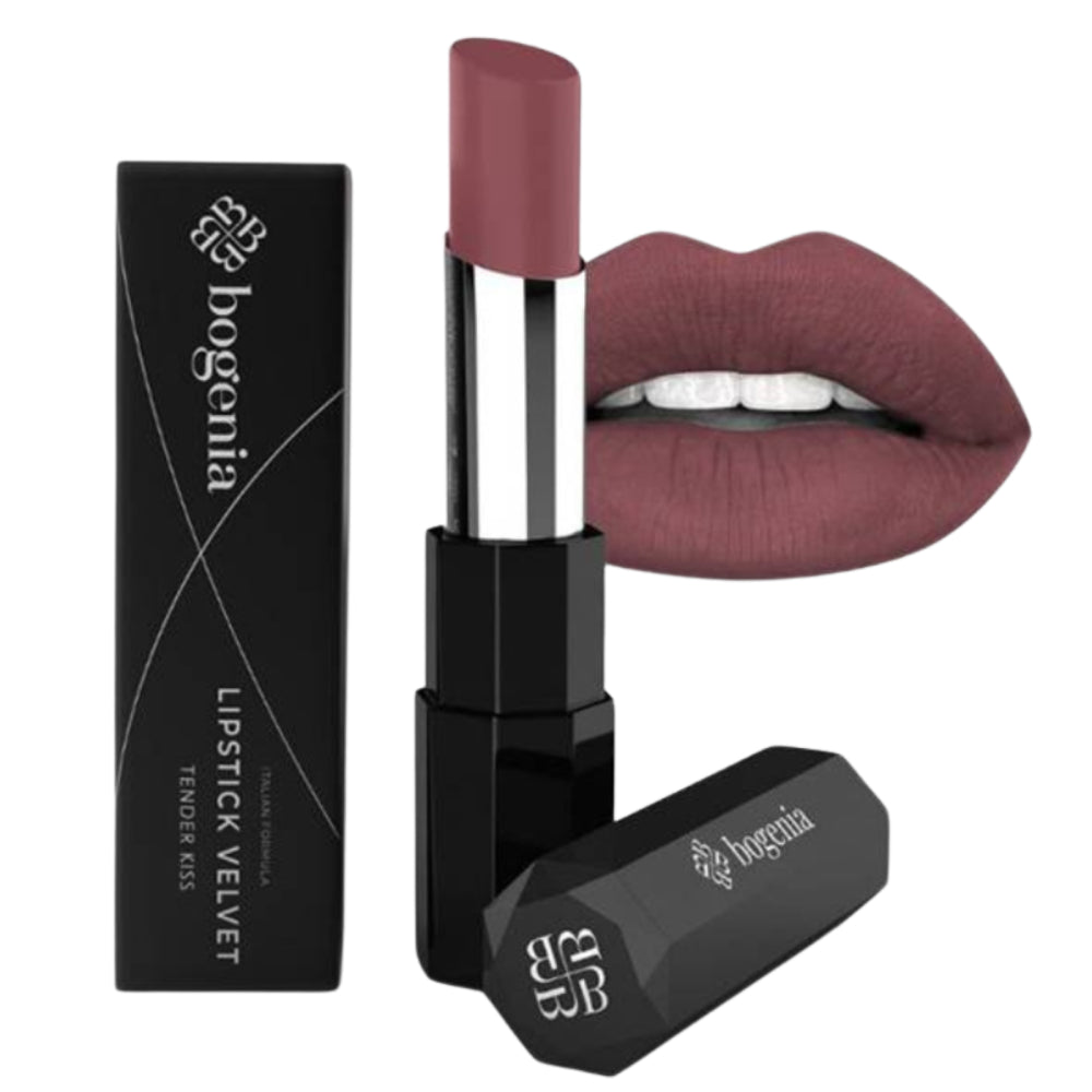 احمر شفاه فيلفيت كريمي مطفي من بوغينيا يدوم طويلا ولا يعمل على تجفيف الشفاه, يتميز بتركيبة غنية من الاصباغ للحصول على احمر شفاه دقيق بلون مطفي كثيف وخفيف على الشفاه.