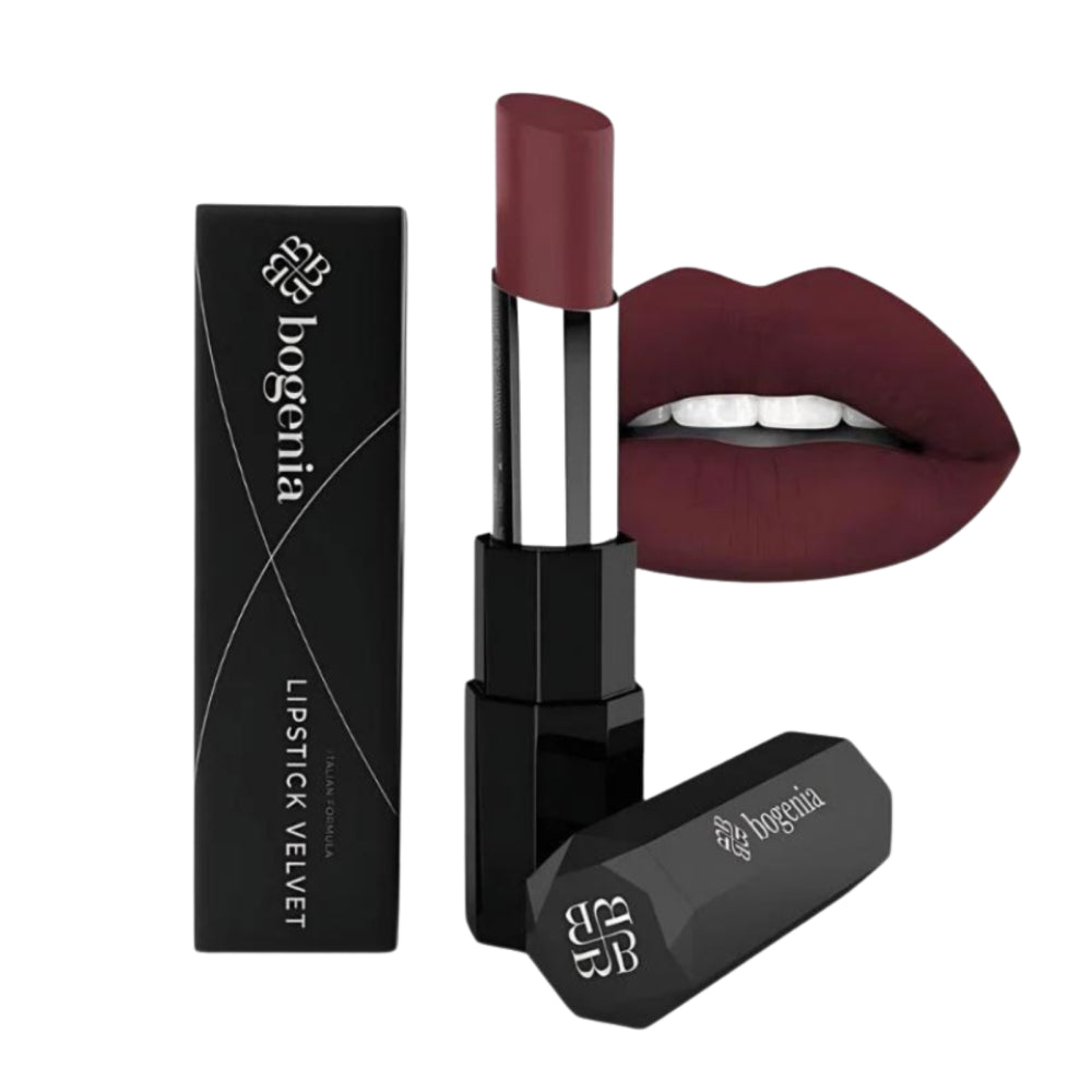 احمر شفاه فيلفيت كريمي مطفي من بوغينيا يدوم طويلا ولا يعمل على تجفيف الشفاه, يتميز بتركيبة غنية من الاصباغ للحصول على احمر شفاه دقيق بلون مطفي كثيف وخفيف على الشفاه.