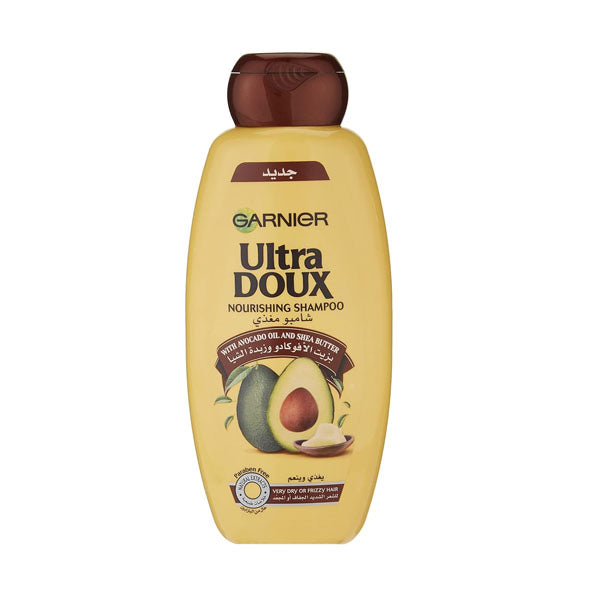 غارنييه الترا دو شامبو بزيت الأفوكادو و زبدة الشيا - وصفة حقيقية تعمل على تغذية الشعر الشديد الجفاف أو المجعد في العمق. تجمع هذه الوصفة بين زيت الأفوكودو المعروف بخصائصه المنعمة، و زبدة الشيا المعروفة بقدرتها الفائقة على التغذية من دون إثقال