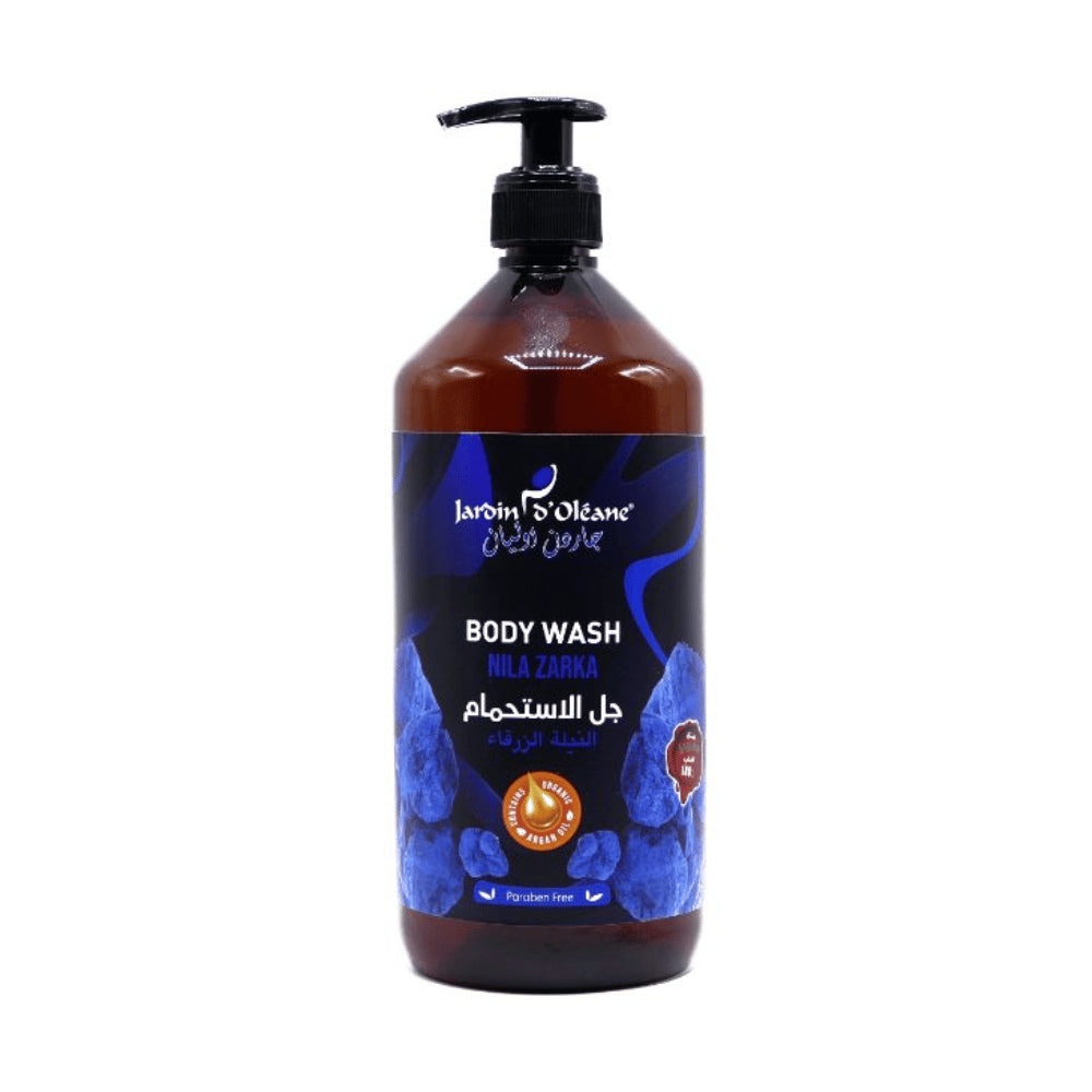 تعمل النيلة الزرقاء على ترطيب البشرة وجعلها ناعمة وحريرية غني بزيت الاركان الثمين يمنح رغوة ذات رائحة ناعمة,