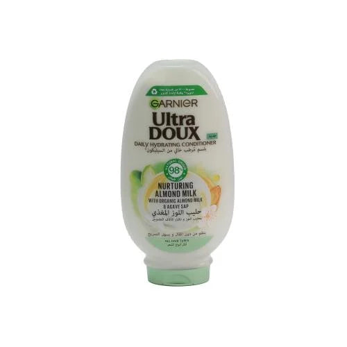 بلسم حليب اللوز المغذي يجمع بين حليب اللوز العضوي؛ كنز غذائي حقيقي لترطيب الشعر دون إثقاله، ورحيق الأغاف العضوي؛ الرحيق الخفيف والصحي المعروف بخصائصه المجددة.