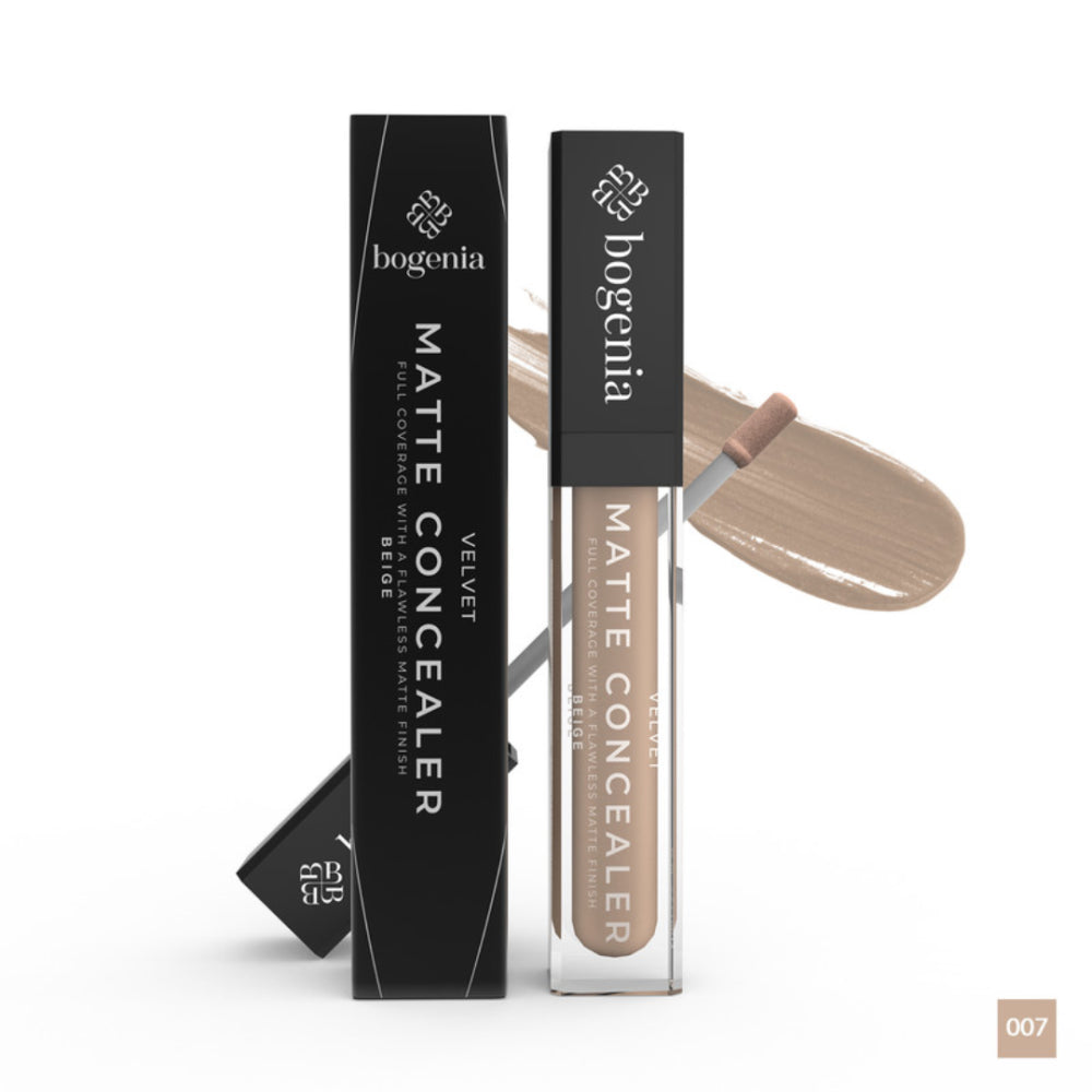 كنسيلر فيلفيت مطفي بيج من بوغينيا – BG620.007 يمنحك تغطية متوسطة إلى عالية بلمسة مطفية طبيعية، مثالي لإخفاء الهالات السوداء والعيوب وتوحيد لون البشرة. تركيبته الكريمية سهلة الدمج، وتتميز بثبات يدوم لساعات دون أن تتكتل أو تتسبب في جفاف البشرة.