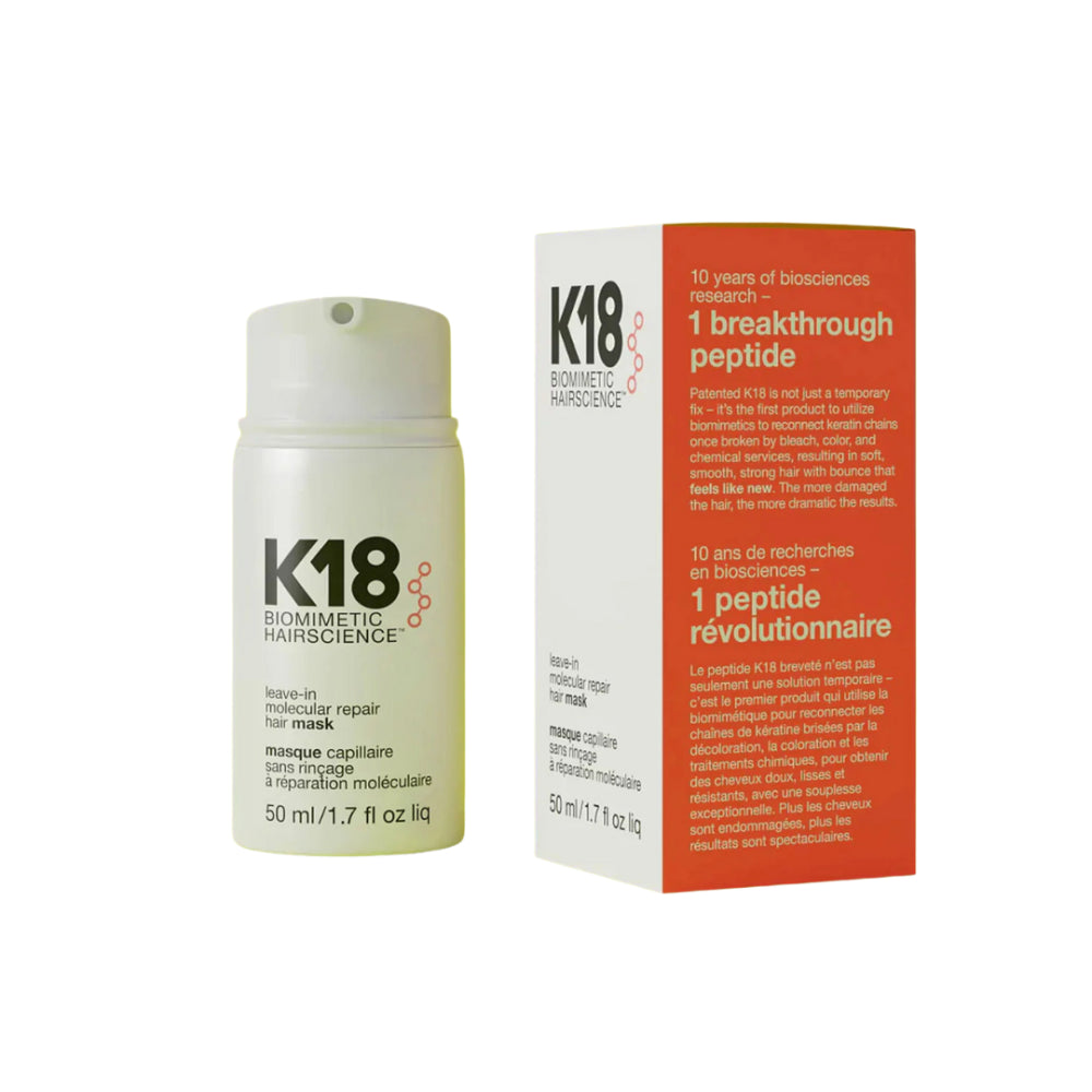 ماسك ليف إن لإصلاح الشعر الجزيئي من كيه 18 – 50 مل هو علاج مبتكر حاصل على براءة اختراع، يعمل على إصلاح الشعر التالف كيميائيًا من الداخل إلى الخارج خلال 4 دقائق فقط. تركيبته الفريدة تحتوي على K18Peptide™، الذي يساعد في إعادة بناء الشعر وتحسين مرونته، مما يجعله مثاليًا لجميع أنواع الشعر، خاصة الشعر المصبوغ أو المعالج حراريًا.